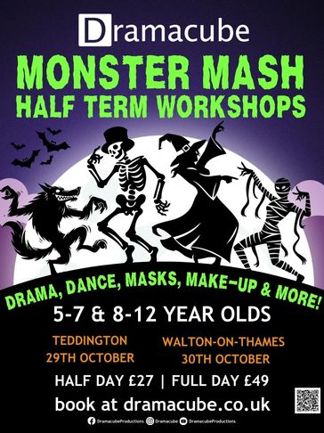 5-7 & 8-12 year olds will whizz into the world of musical theatre through ghoulish drama games, eerie stage makeup & masks, and a spine-tingling monster-mash routine.